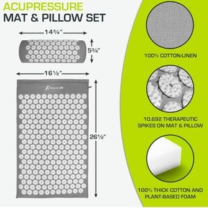 ProsourceFit acupressure mat and pillow set in gray. Features white acupressure points for relaxation and pain relief.