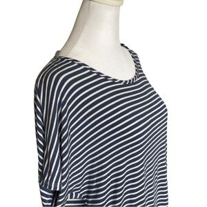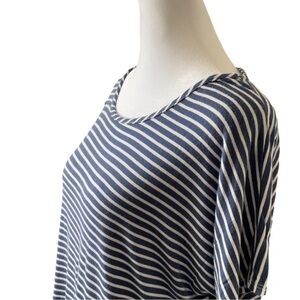 This short sleeve tee from Prospect Blvd features a scoop neckline and a slightly oversized, relaxed fit in a nautical striped style. Super cute with jeans, capris, Bermudas and tennis shoes.