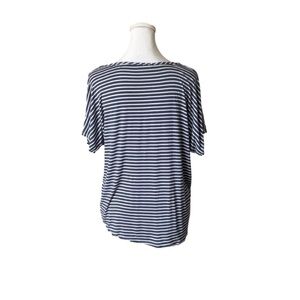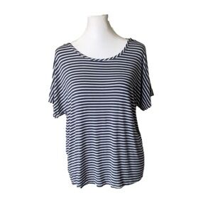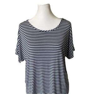 This short sleeve tee from Prospect Blvd features a scoop neckline and a slightly oversized, relaxed fit in a nautical striped style. Super cute with jeans, capris, Bermudas and tennis shoes.