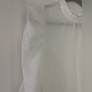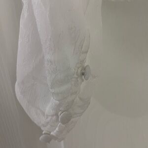 Long sleeve blouse with floral appliqué detail. Tie neck closure on back. Button details on sleeves. Slight puff sleeve and semi sheer. Size Small. Brand Prospect the Label. Worn once. Great condition.
