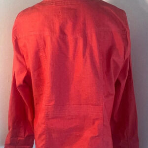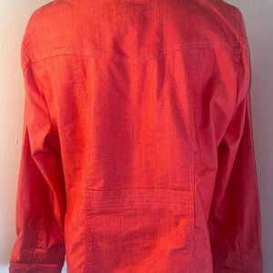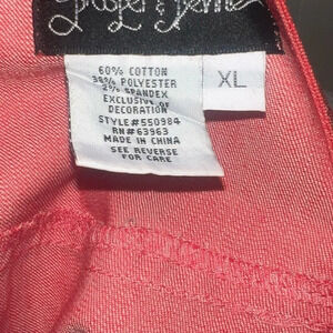Prosper& divine XL embellished shacket w/ jeweled neckline & center front line lapel and snap closure upper front pockets lower front pocket. 60% cotton 38% poly 2% spandex