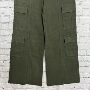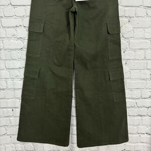 Prosperity Denim Wide Straight Leg Cargo Jeans Women's 25 in Olive Green NWT.