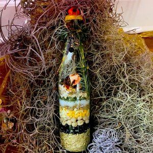 Prosperity, abundance, protection, New Year 2021 100% handmade/Prosperity Intention Spell bottle infused with charged Materials: wildcrafted, grains, bay leaf, fir, basil, blessed money, cinnamon, dried flowers and herbs containing properties aligned with energies for intention manifestation. natural elements. charms obsidian stone (protection) sealed with soy wax. *This fabric is placed under the moon and stars to be blessed and charged with cosmic energy.
