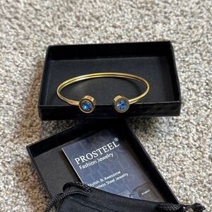 Prosteel | Stainless Steel Birthstone Cuff Bracelet in Gold & Blue