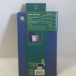 NWT Protect Onn. 8.7" Blue Tablet Folio Case Samsung Galaxy Tab A7 Lite, model SM-T225. Easy device installation & removal, lightweight, precise cutouts for access to all ports & buttons, built-in viewing stand & foldable flap, soft microfiber lining, magnetic side closure. Brand new with tags! 2 available!