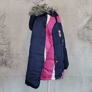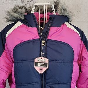 Lightweight, water-resistant Protection Systems winter jacket with warm fleece lining, faux fur trimmed hood, and snap closure front hand pockets. NWT Kids size 16 but would fit an adult small.