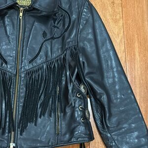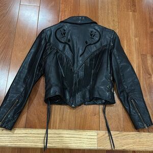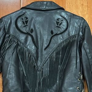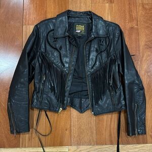 Protect Leather Apparel Vintage Bikers Black Leather Fringe Jacket size M in excellent condition.