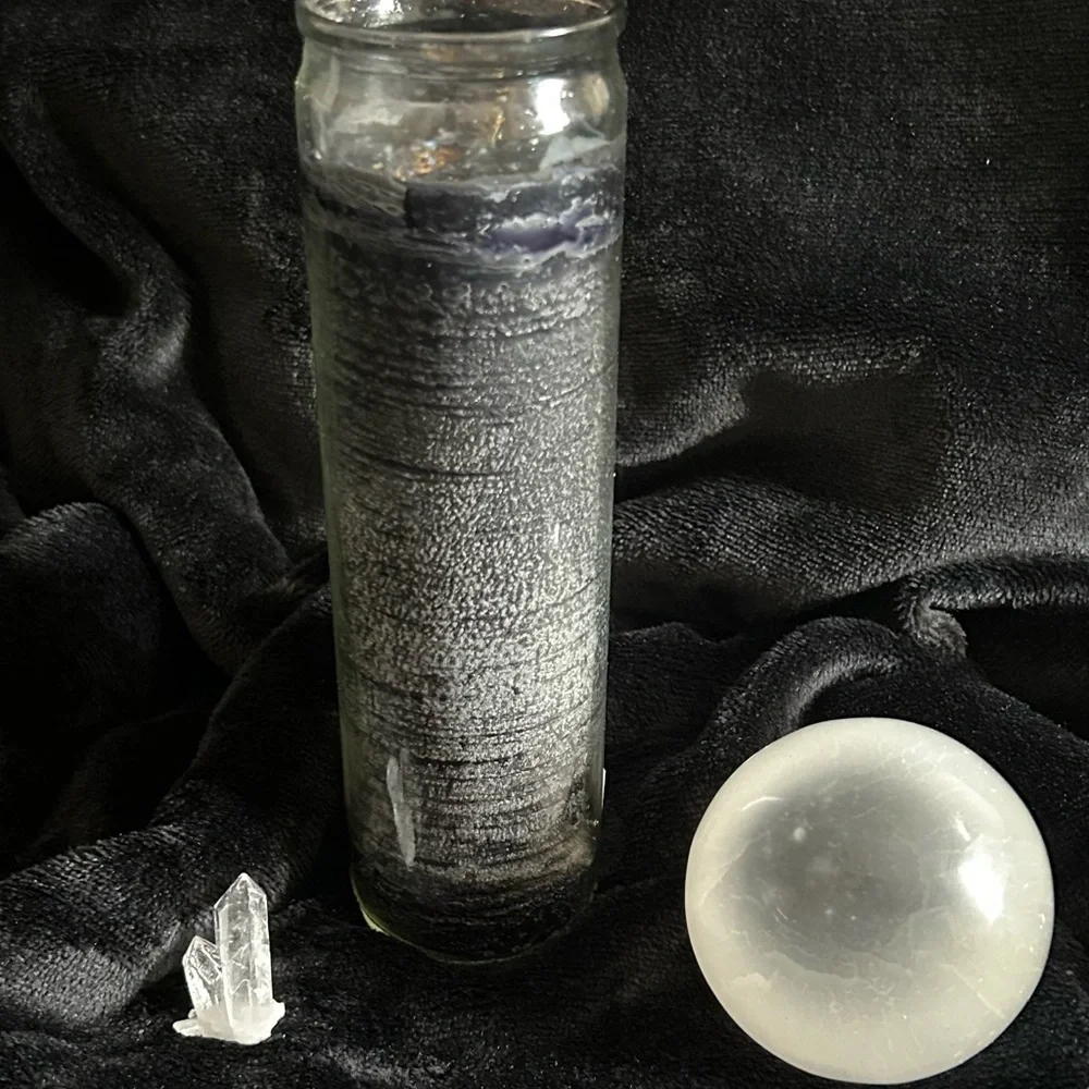 Dressed with herbs and oils to shield against negative influences and harmful energies. In many traditions, black candles are used for protection and banishing negative energy. They are believed to ward off malevolent forces and to cleanse a space or person of negative energies and influences.