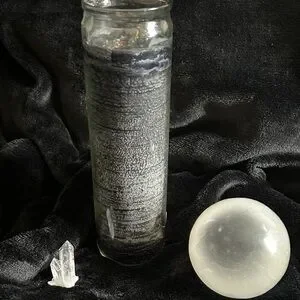 Vestido con hierbas y aceites para protegerse contra las influencias negativas y las energías dañinas. En muchas tradiciones, las velas negras se utilizan para proteger y desterrar la energía negativa. Se cree que se alejan de las fuerzas malévolas y limpian un espacio o una persona de energías e influencias negativas.