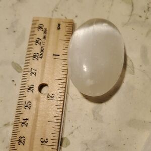 -tumbled/polish satin spar selenite (has rough looking spots & scratches but doesn't feel rough at all)