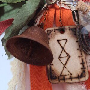 #WitchyHomeDecor #ProtectionTalisman #AngieBryanCreations #DoorCharm #SpiritualTools #HandcraftedMagic #WitchyVibes #RuneMagic #Cascarilla #WitchBell #NegativityShield