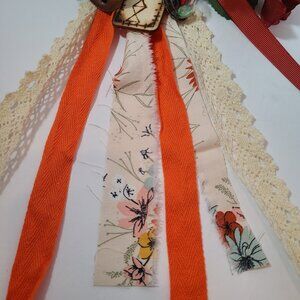Handwoven grapevine-style ring wrapped in burnt orange ribbon