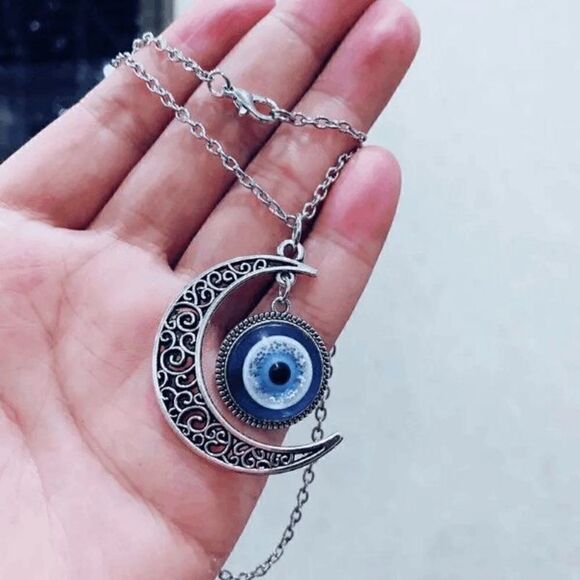 Protection Evil Eye Crescent Moon Gothic Punk Pendant Necklace