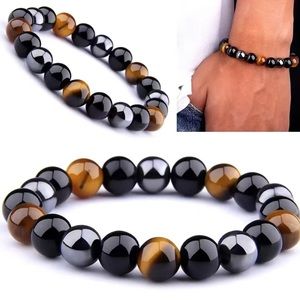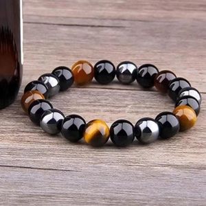 8 mm gemstone bracelet with tigers eye, black obsidian and hematite. 7” Will be energetically charged by a Reiki Master ✨✨✨