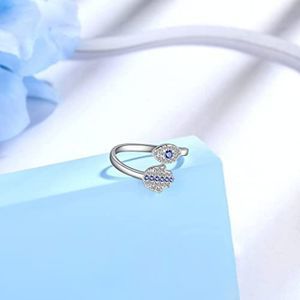 Protection Symbol Evil Eye Jewelry for Mom Grandma Silver Blue Evil Ring