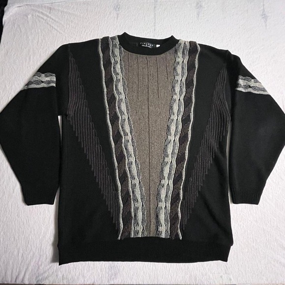 Protege Collection Mens XL Black Gray Textured Knit Sweater Pullover Vintage 3D