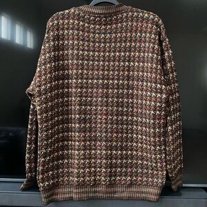 Protege Men's Retro Style Houndstooth Crew Neck Sweater. Multi color houndstooth knitted pattern.