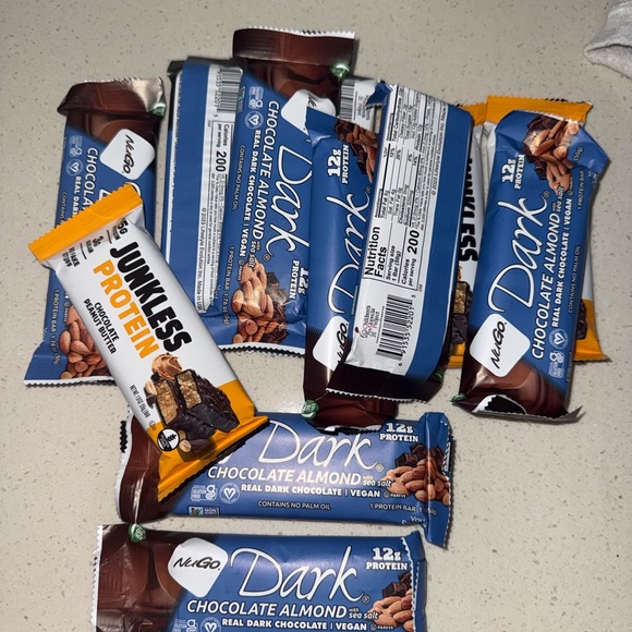 Dark chocolate sea salt, protein bars, and junk list, protein, chocolate, peanut butter bars. I bought the big packs of both of these and am tired of the taste so selling what I have left. Bundle to save $