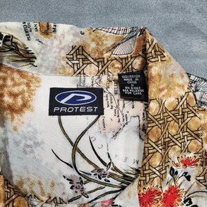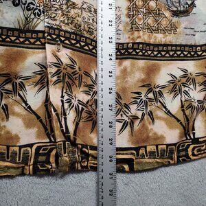 Protest Button Up Short Sleeve Shirt Oriental Map Theme Red Brown Tan Wm Sz M