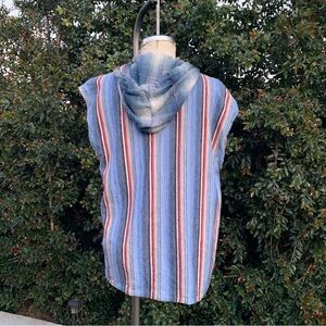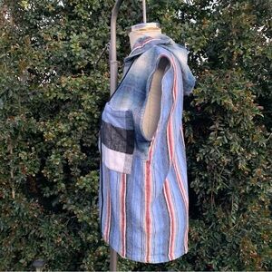 Stylish sleeveless vest with a unique patchwork design. Features a mix of colorful stripes and patches. Perfect for layering.