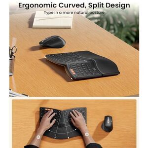 Compact Ergonomic Keyboard: Compact split layout(80 keys) for reducing repetitive shoulder motion, paired with ergonomic mouse, helps correctly position your hands when typing, saving from straining your wrists.