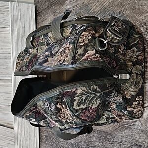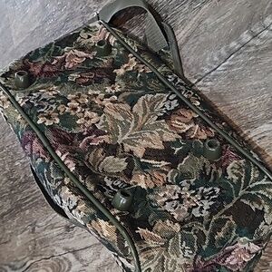 Incredible, gorgeous and classic style. This floral tapestry duffel bag has been paired with a train case. The floral pattern and thick, tapestry fabric is Absolutely amazing. The colours are just stunning on these beautiful pieces. Vintage luggage pieces are getting harder to find. Both in really great condition.