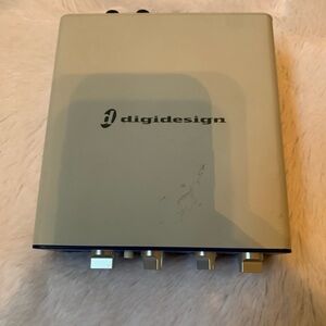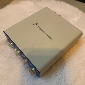 Protools M Box Compact blue audio interface featuring silver knobs. Ideal for music production.No USB cord.
