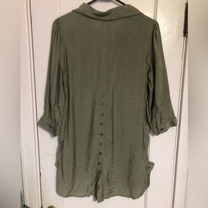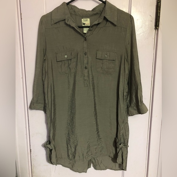 Prototype grey/silver top. Women’s size medium. Great condition, minimally worn. It’s a grey silver color and can look slightly metallic in some lighting. The sleeves are elbow length and have tabs to keep them rolled up as well.