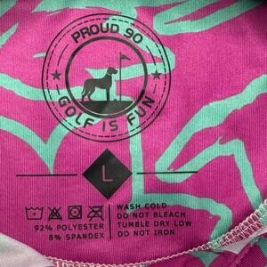 Proud 90 Women's Short Sleeve Pink Green Floral Pattern Golf Polo Shirt - Size L