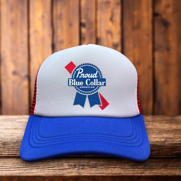 Proud Blue Collar Mens Trucker Hat Blue Middle Class Trucker Union Patriot Cap