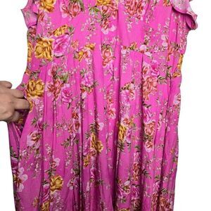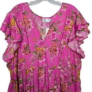 Proud Poppy Alexis Dress Pink Floral Button Front Flutter Sleeves Size XL
