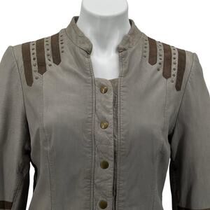 Provider Sunburst Leather Military Jacket Womens SZ XL Gray Studded Moto Chic