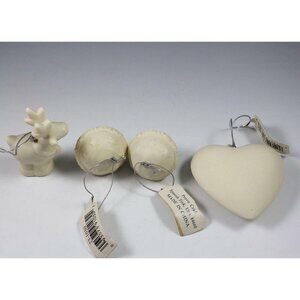 Provo Craft Lot of 4 Bisque Porcelain Ornaments Heart Jingle Bells Reindeer EUC