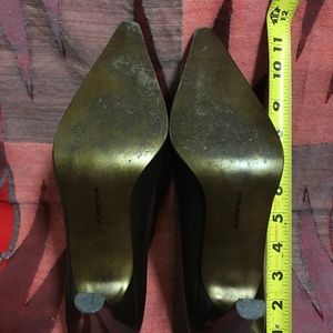 Very elegant shoes w/ lacing detail at toe box & bronze colored sole & interior lining. Slight wear to soles and no real signs of wear to interior. Heels considered in excellent condition with considerable life remaining.