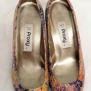 Proxy Women's Multi Colored Floral High Heels Made in Spain Gold Heels Size 10M