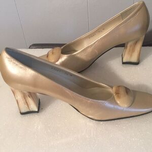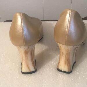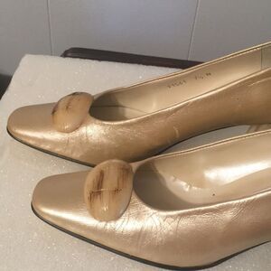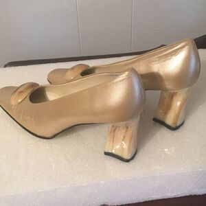 These chic tan heels boast a stylish peep-toe design and a moderate heel height, perfect for elevating any ensemble. Crafted from smooth material, they feature a unique pleated detail on the toe area for added elegance.