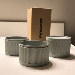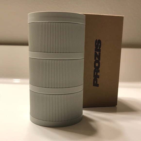 Sleek gray storage container by Prozis. Perfect for organizing small items. Modern design with ribbed texture.