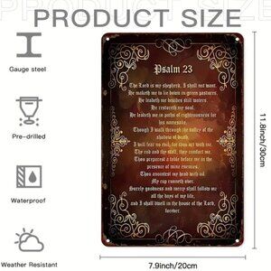 Crafted from durable, fade-resistant metal, this sign is designed to provide inspiration for years to come. Perfect for home, office, or worship spaces, this beautiful Psalm 23 sign is a reminder of spiritual resilience and peace. Its timeless message, along with the vintage script and intricate detailing, makes it a thoughtful gift for loved ones or a cherished addition to your own sanctuary. Suitable for Christians and individuals from various spiritual backgrounds, this sign transcends religious boundaries, celebrating a universal theme of divine care and serenity.