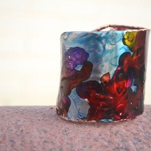 Psychedelic Hippie Copper Cuff Butterfly Bracelet Trippy Red Blue Painted OOAK