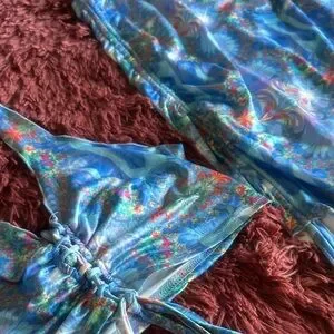 Top can be worn as halter as shown or upside down as a tube top with some flowy bits or waist tie