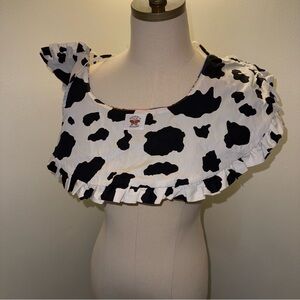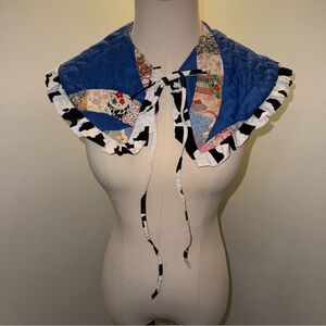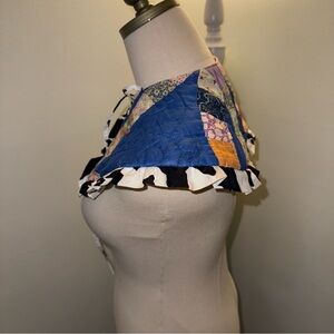 Psychic Outlaw Patchwork Quilted Colorful Blue Cow Statement Ruffle Collar