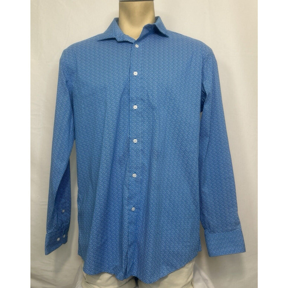 Psycho Bunny Dress Shirt Mens 17.5 34/35 Modern Fit Blue Print Non Iron Stretch