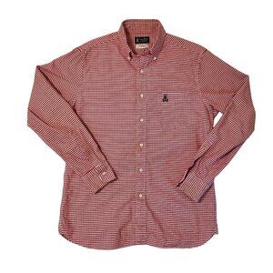 Psycho Bunny Gingham Check Long Sleeve Button Front Shirt Red size Medium