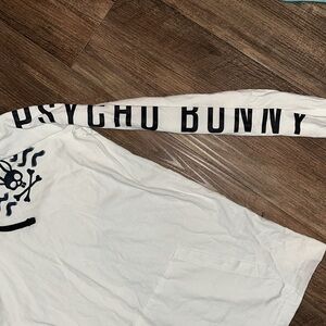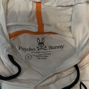 Psycho Bunny Hooded Shirt size 3 White with Blue Graphics EUC