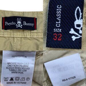 This Psycho Bunny men's Cotton Short makes a statement due to it's classic fit, flat front, zip fly with button/slide, pockets, belt loops, logo placement and light beige khaki shade