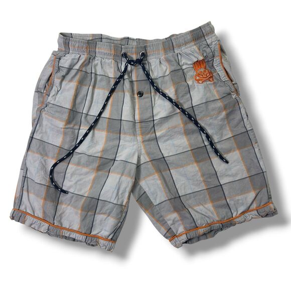 Psycho Bunny Mens Shorts Med Skull Logo Loungewear Pajamas Plaid Gray Pocket. Condition is Pre-owned - Good. Shipped with USPS Ground Advantage.