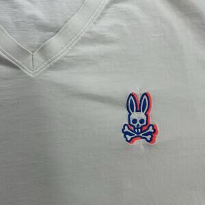 Psycho Bunny Men's T Shirt Size XL 7 Short Sleeve V Neck Embroidered Logo White