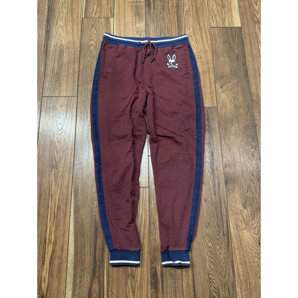 Psycho Bunny Pants Mens Medium Burgundy Blue Joggers Lounge Sweatpants (PICS!)
