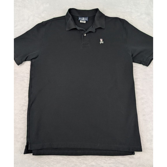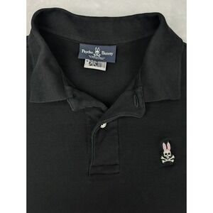 Psycho Bunny Polo Shirt Mens 9 (3XL) Black Short Sleeve 100% Pima Cotton. Please verify size measurements in the images before purchase. According to the measurements taken this shirt seems small for a 3XL. Likely fits closer to an XL as compared to most shirt sizes.