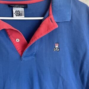 Psycho Bunny Polo Shirt Mens Sz 9 Extra Large White Red Blue Striped Pima Cotton